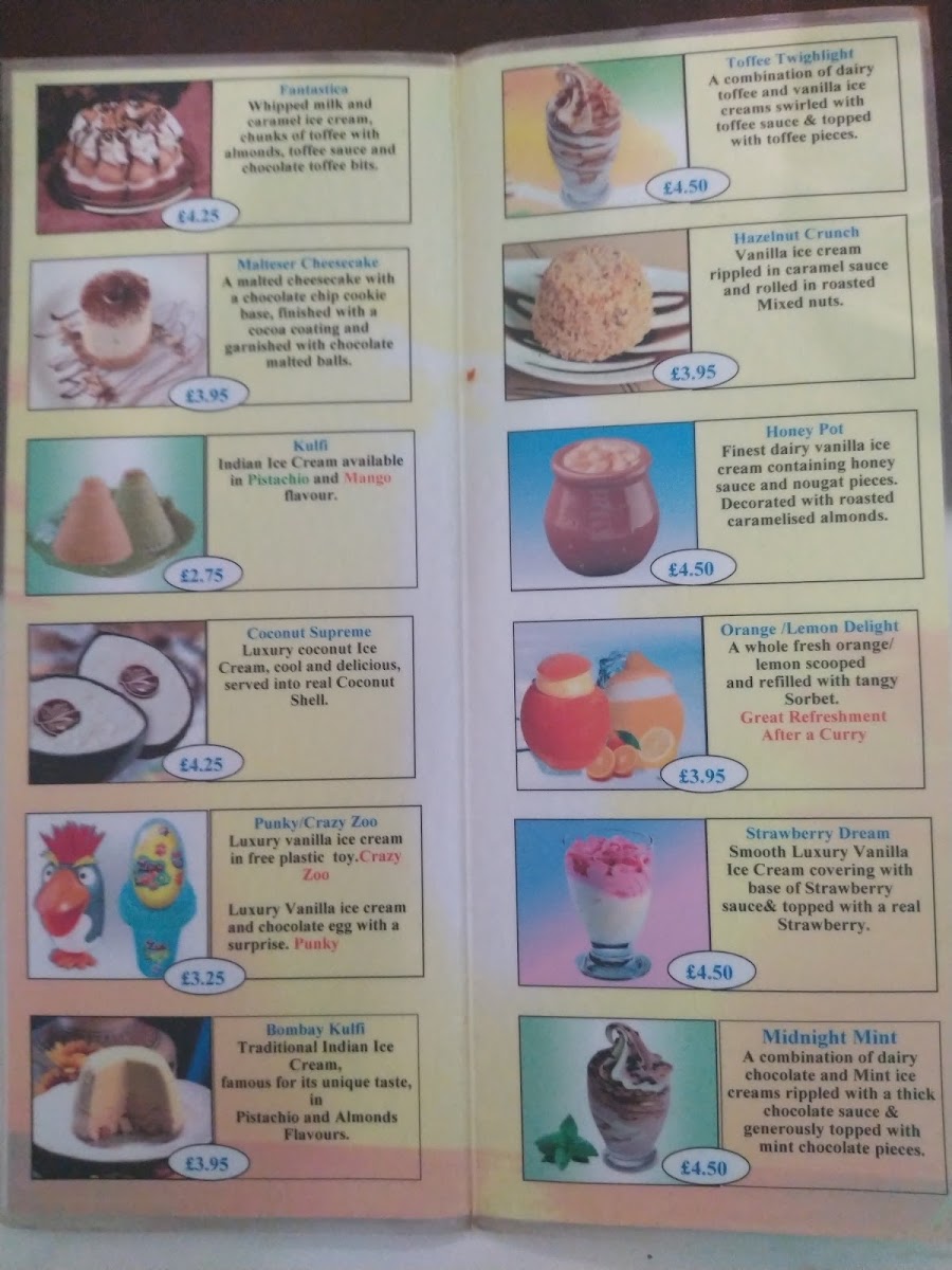 4x papadoms, chicken tikka and onion bhaji, lamb bhuna, chicken korma, bombay potato, special fried rice and naan bread